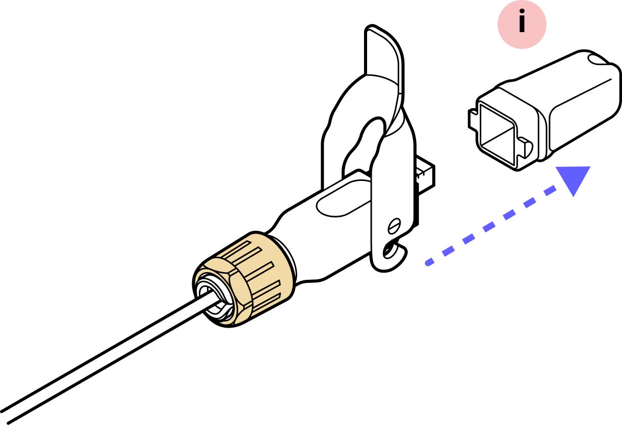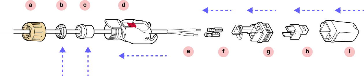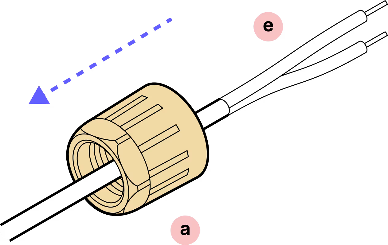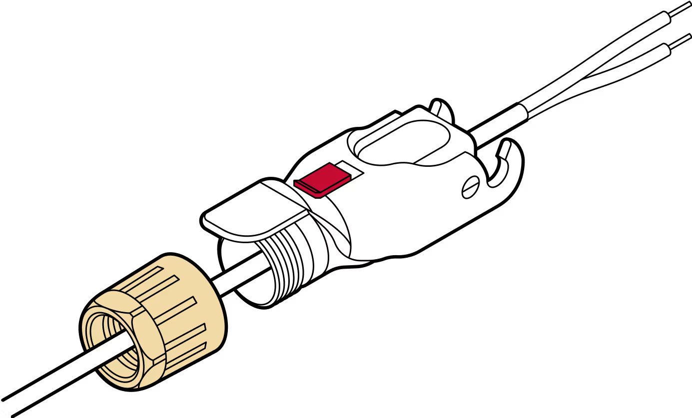 Slide the yellow gland nut onto the cable followed by the plastic housing.