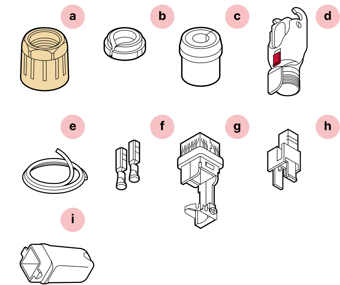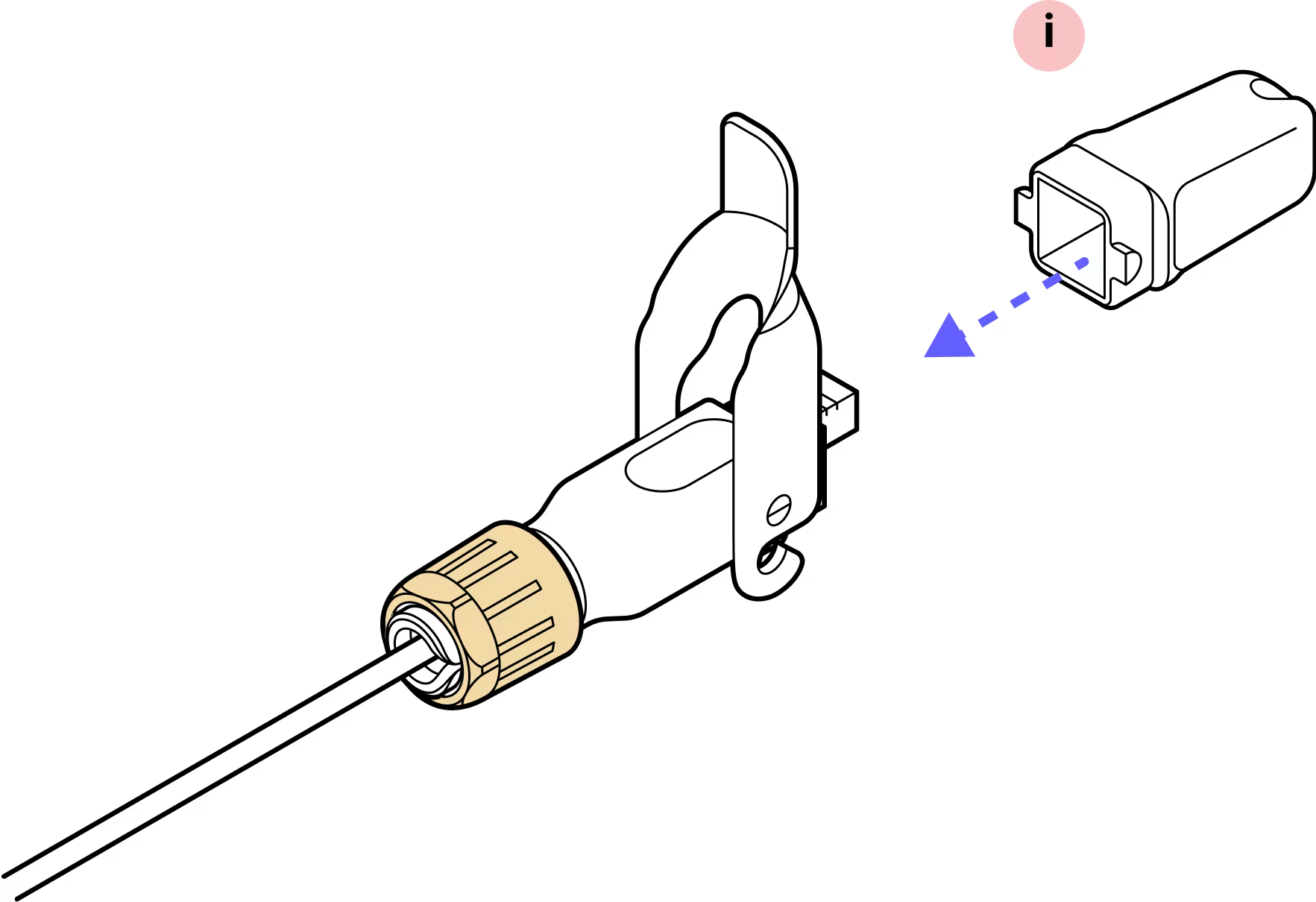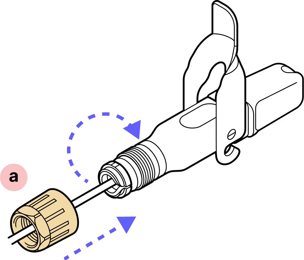 Slide the yellow gland nut onto the cable followed by the plastic housing.