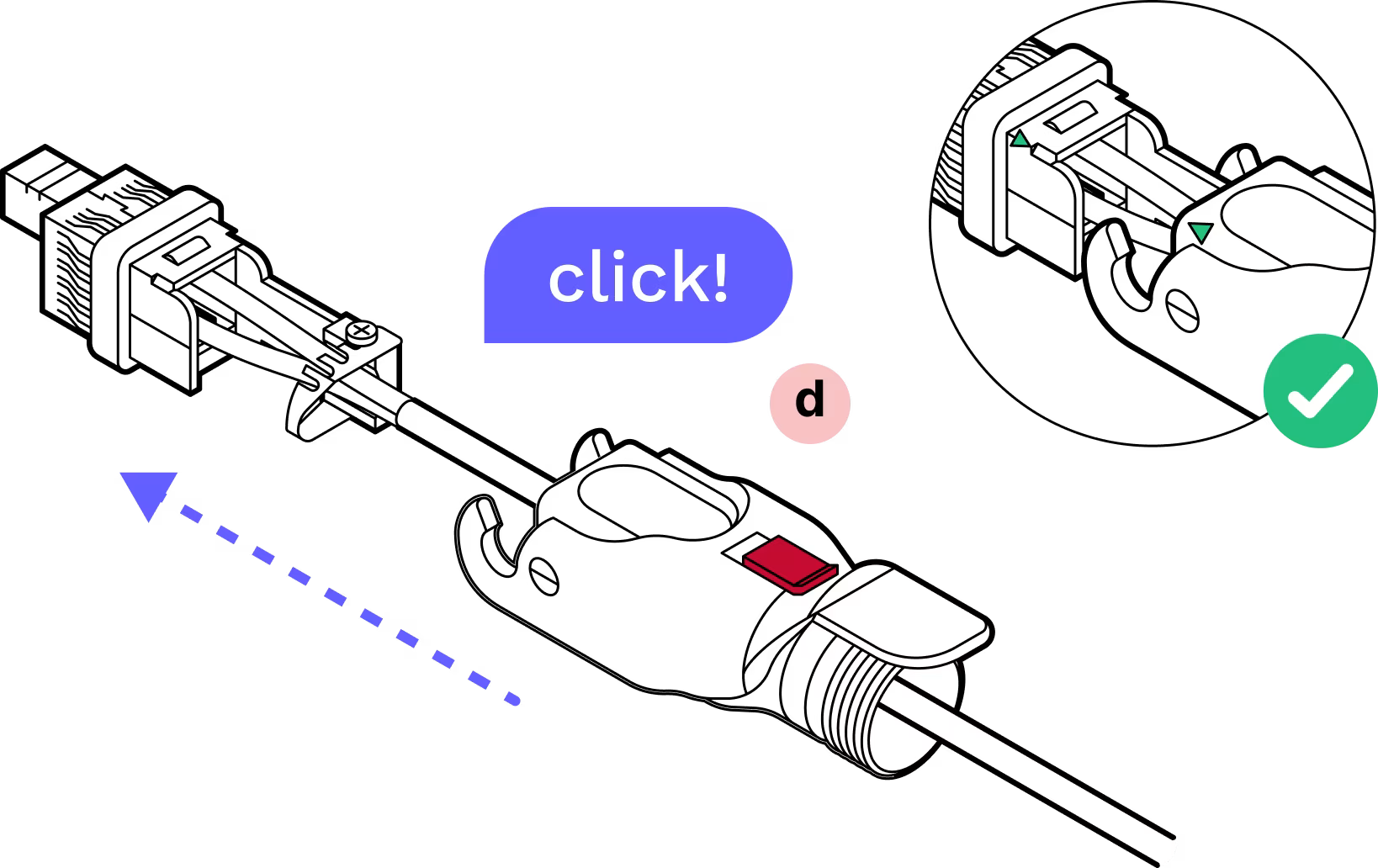 Line up the arrow on the outer housing with the arrow on the inner housing and slide them together until they click.