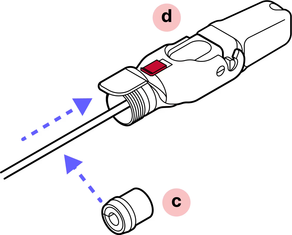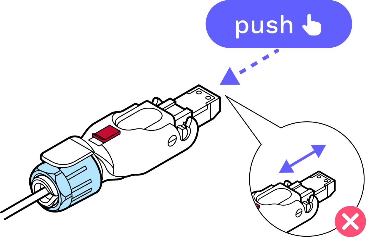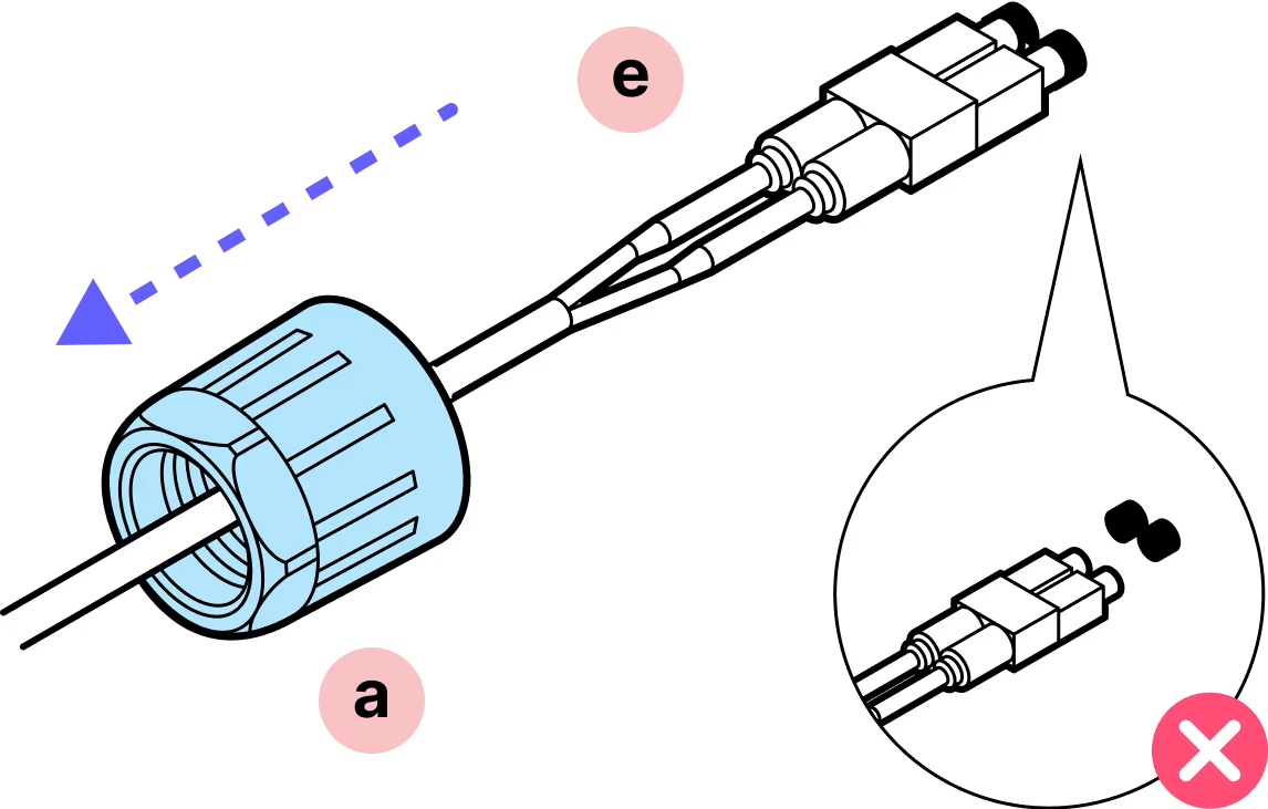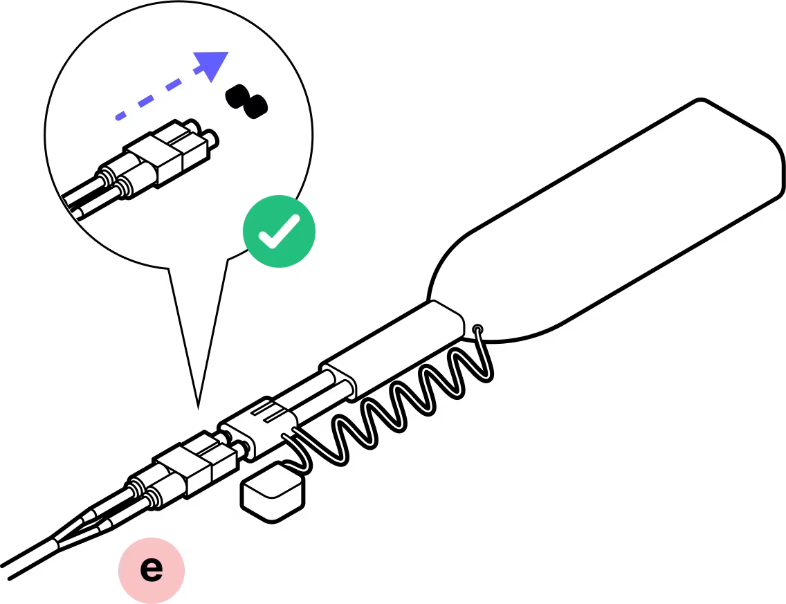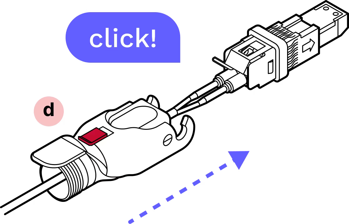 With the metal tab on top in-line with the tab on the fiber assembly, gently insert the assembly into the inner housing until it clicks into place.