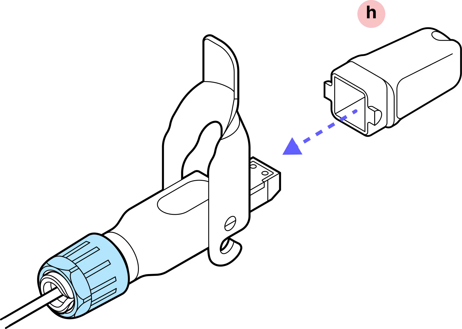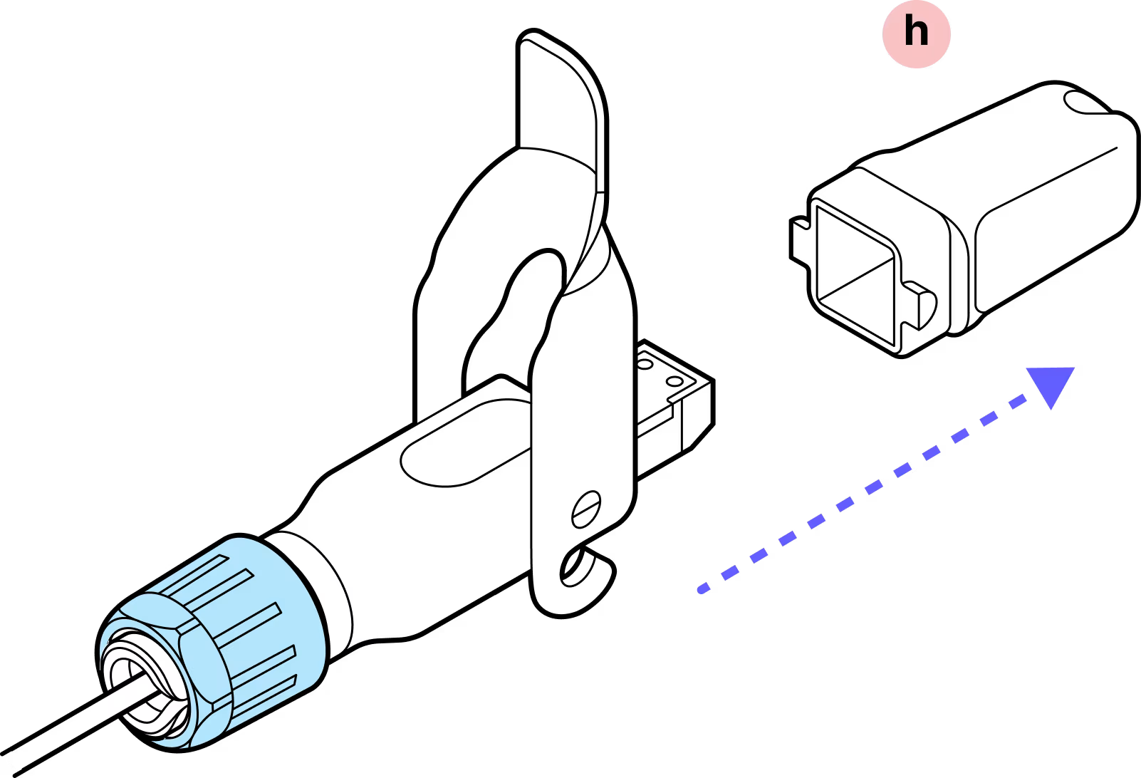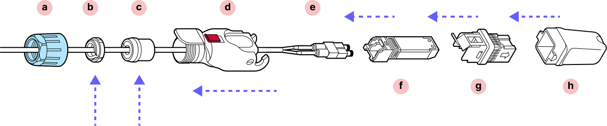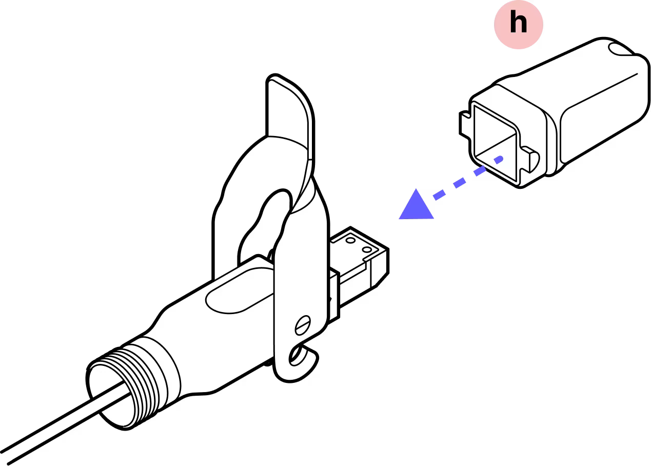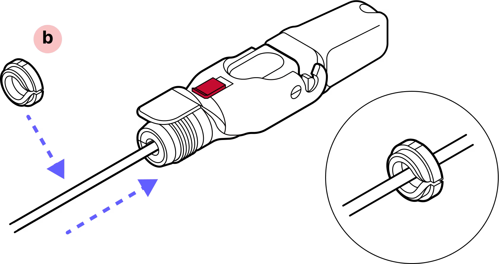 With the metal tab on top in-line with the tab on the fiber assembly, gently insert the assembly into the inner housing until it clicks into place.
