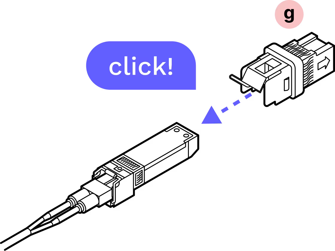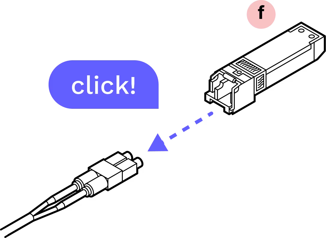 Plug the connector into the SFP until you hear a click.