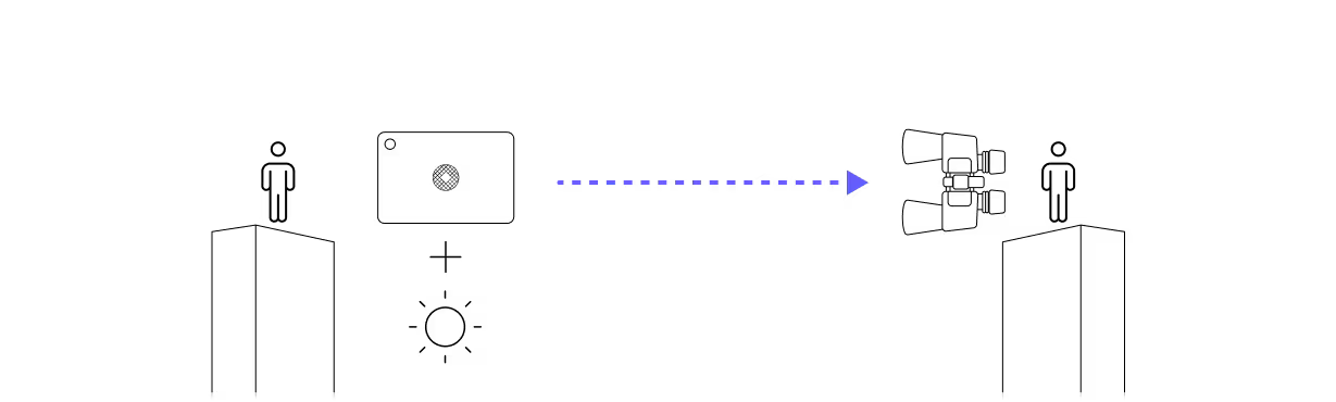 If it's cloudy, flash the signal to the other side using a flashlight. Use binoculars to witness the flash for longer distance links.