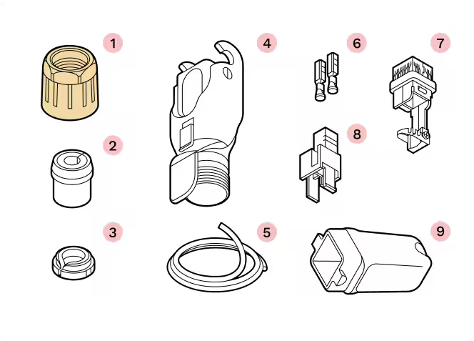 - Red window cover. Don't forget to remove the red safety cover after physical installation and all connections are verified.