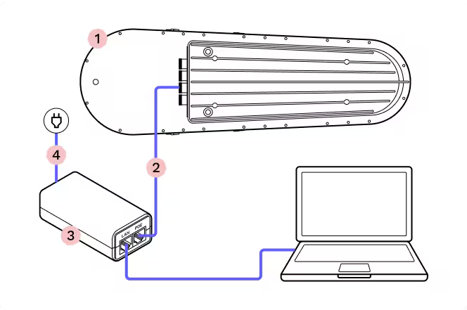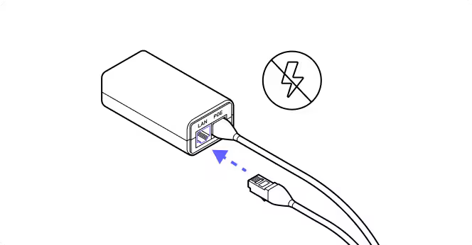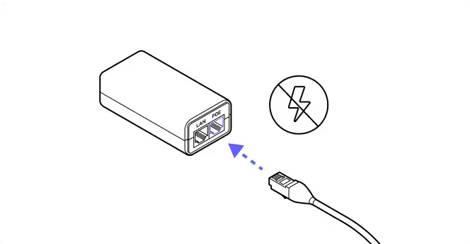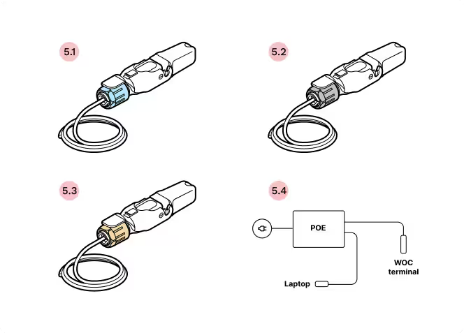 - If Power over Ethernet (PoE) is used to power up the WOC terminal, connect the Ethernet cable from the RJ45 port of the WOC terminal to the PoE port of the PoE adapter, and connect the Ethernet cable from the L AN port of the PoE adapter to the external switch or router.