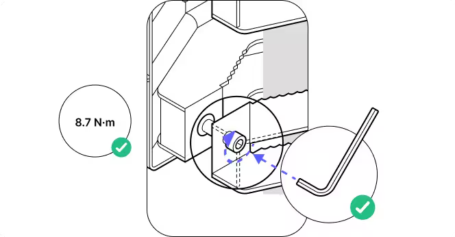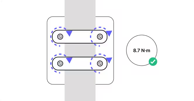 - Torque control. Ensure all fasteners are tightened to the specified torque 8.7 Newton meters (N·m) max to secure the mounting bracket in place.