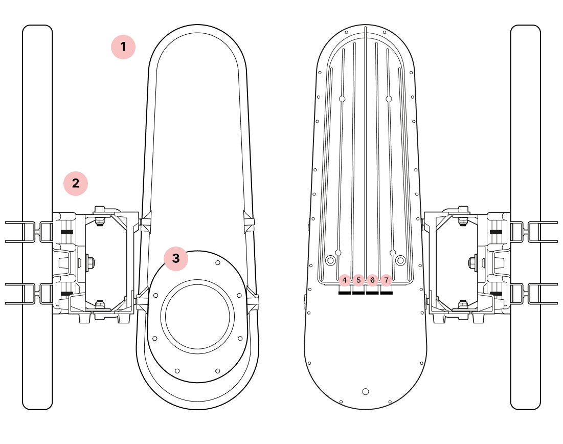 - Mounting fasteners. When tightening the WOC terminal bolts, start with the top two. Tighten four mounting fasteners to attach WOC to the pole bracket (8.7 N-m max).