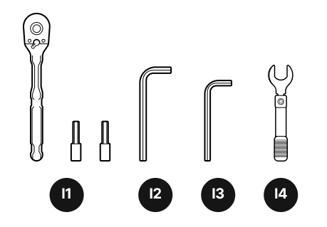 Afrouxe as garras do suporte em cada ponto para poder girar os suportes e alinhá‑los entre si.